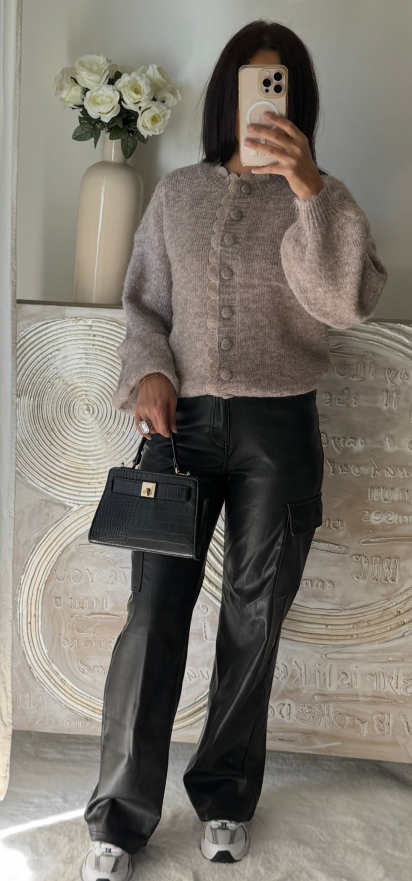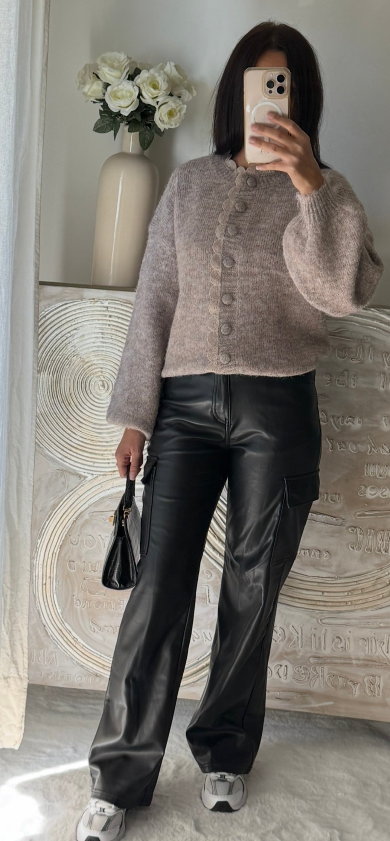 Adoptez le confort et l’élégance avec ce cardigan en maille douce contenant de la laine pour vous offrir une chaleur agréable tout au long de la journée, doté de boutons ton sur ton et d’une finition ondulée originale le long de l’ouverture. Ses manches longues légèrement bouffantes apportent une touche moderne et féminine. Idéal pour un look cosy-chic au quotidien, que ce soit avec un jean ou une jupe.